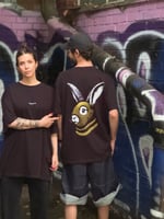 Oversized geschnittenes T-Shirt aus schwerer Baumwolle (100% Cotton, 240 g/sm, OEKO-TEX® Standard 100) mit zweifarbigem Backprint und einfarbigem Chestprint. Das Shirt hat überschnittene Schultern und fällt lässig aus, bitte beachte die Größentabelle in der Bildergalerie. Wenn du einen klassischeren Fit möchtest, am besten eine Konfektionsgröße kleiner bestellen.